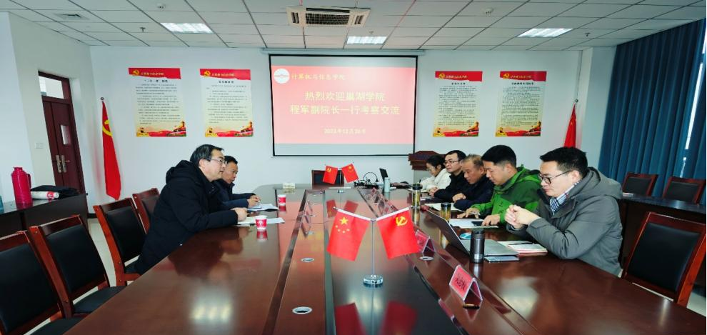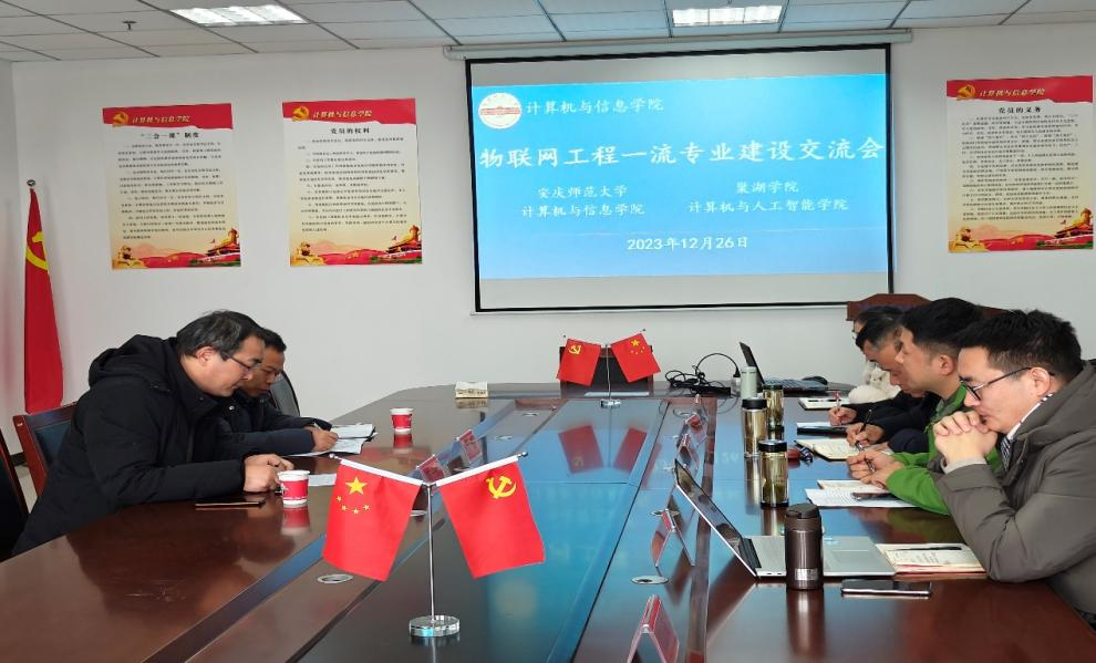 為進(jìn)一步加強(qiáng)專業(yè)建設(shè),提高人才培養(yǎng)質(zhì)量,12月26日,計(jì)算機(jī)與人工智能學(xué)院副院長(zhǎng)程軍、網(wǎng)絡(luò)工程系主任洪興勇等一行赴安慶師范大學(xué)計(jì)算機(jī)與信息學(xué)院調(diào)研學(xué)習(xí)。安慶師范大學(xué)計(jì)算機(jī)與信息學(xué)院副院長(zhǎng)吳海峰、物聯(lián)網(wǎng)工程專業(yè)國(guó)家一流專業(yè)負(fù)責(zé)人王一賓教授,系主任劉桂江、物聯(lián)網(wǎng)工程專業(yè)負(fù)責(zé)人汪文明等參加調(diào)研交流會(huì)。會(huì)議由吳海峰主持。