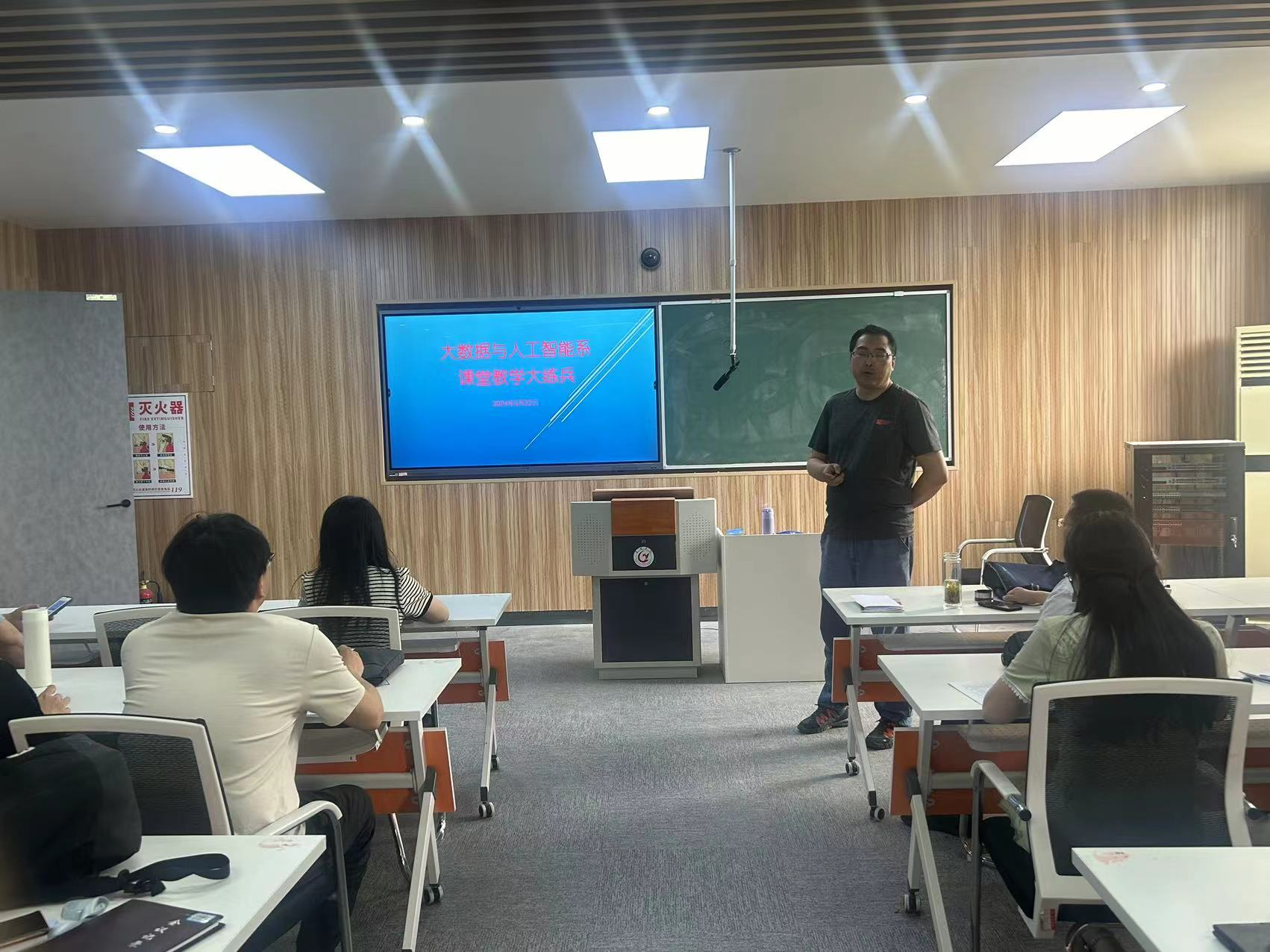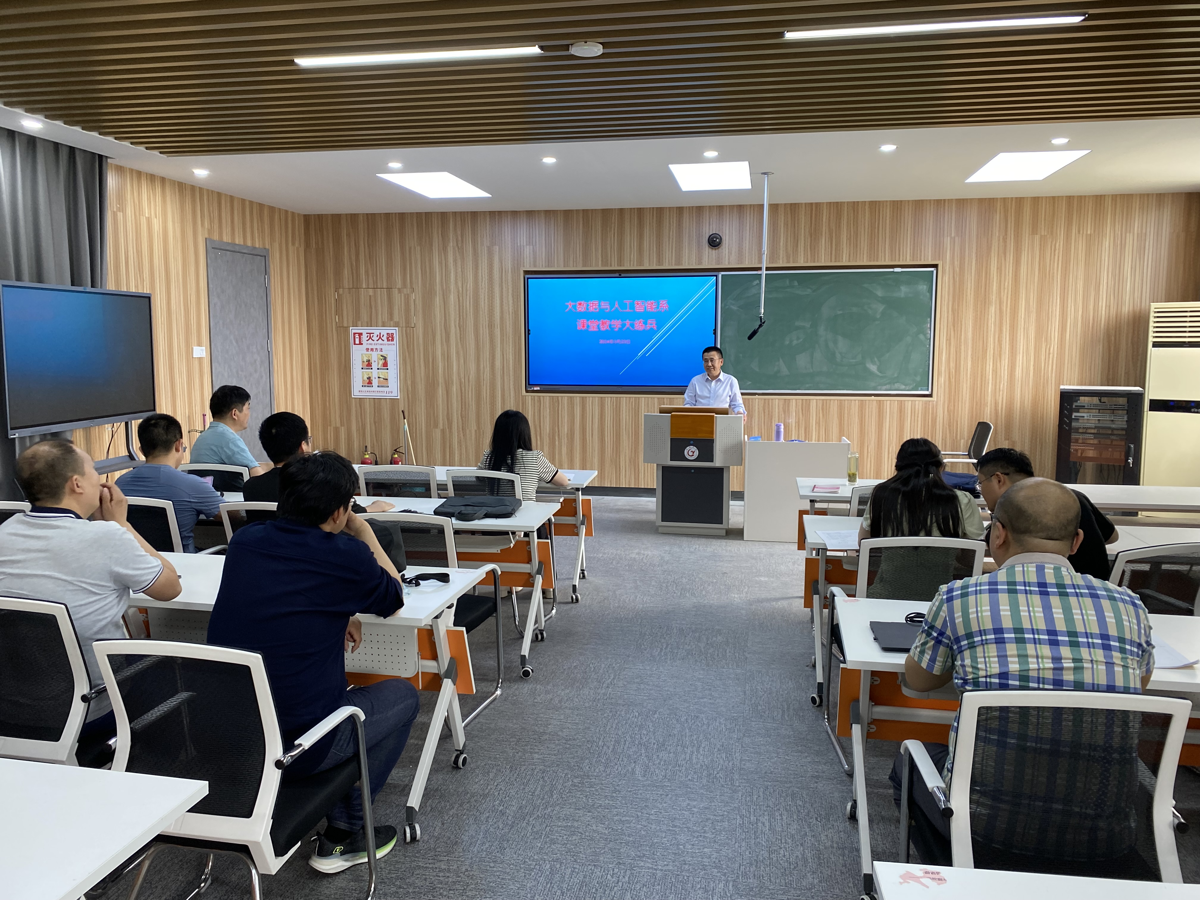 為深化教育教學(xué)改革,提升大數(shù)據(jù)與人工智能系教師教學(xué)能力和水平,特別是發(fā)揮黨員教師在教學(xué)中的示范引領(lǐng)作用,大數(shù)據(jù)與人工智能系于5月22日在慎思樓南202教室舉辦了大數(shù)據(jù)與人工智能系“課堂教學(xué)大練兵”活動。副院長程軍出席活動,活動由數(shù)據(jù)科學(xué)與大數(shù)據(jù)技術(shù)專業(yè)負(fù)責(zé)人劉振羽主持。