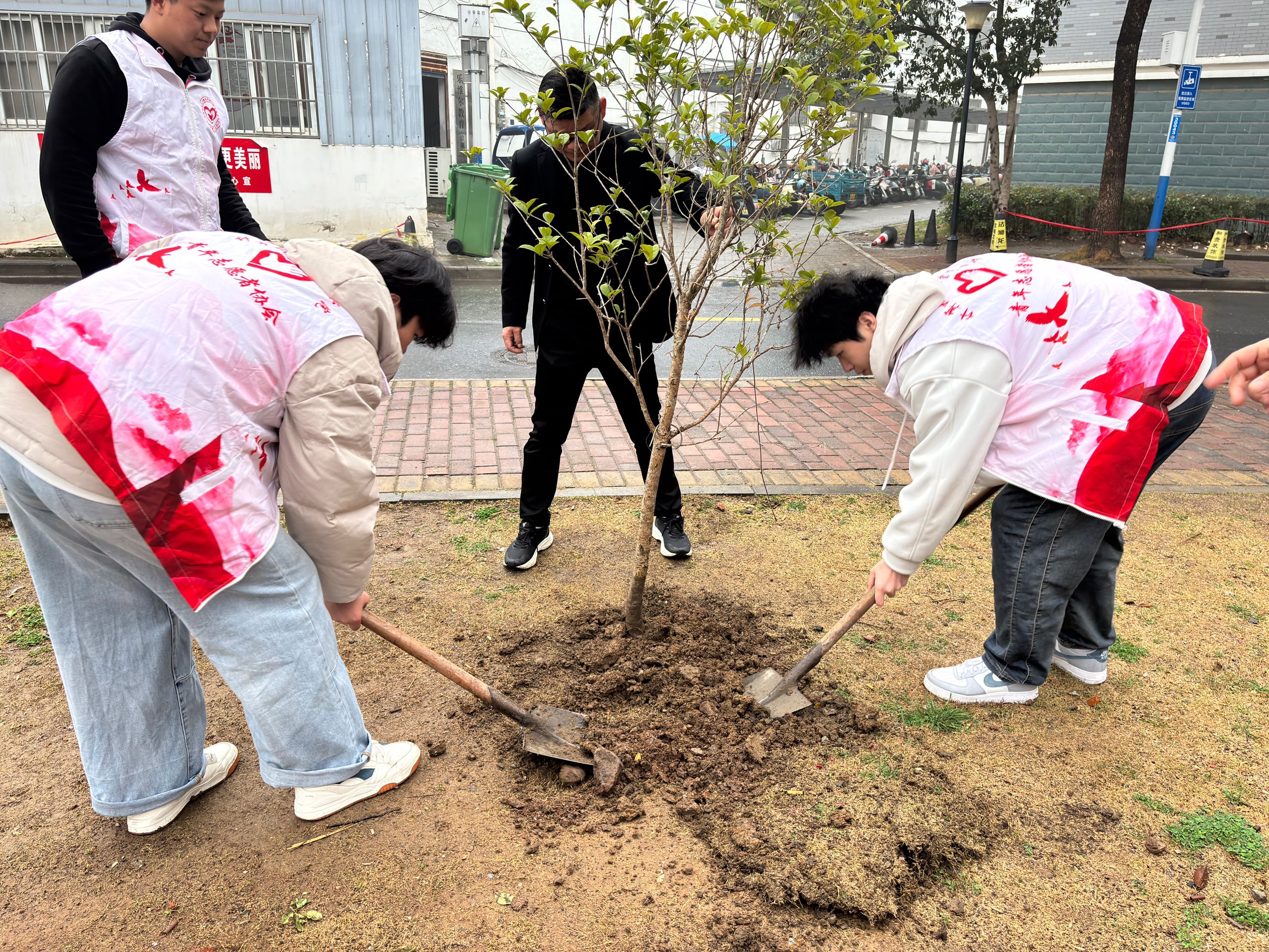 春回大地萬物蘇,植樹添綠正當時。為踐行生態文明理念,深化校地共建合作,3月12日,正值全國第45個植樹節,計算機與人工智能學院大學生志愿者團隊聯合官圩社區志愿者,前往濱湖苑小區開展植樹節植樹活動,以實際行動為城市增添新綠。