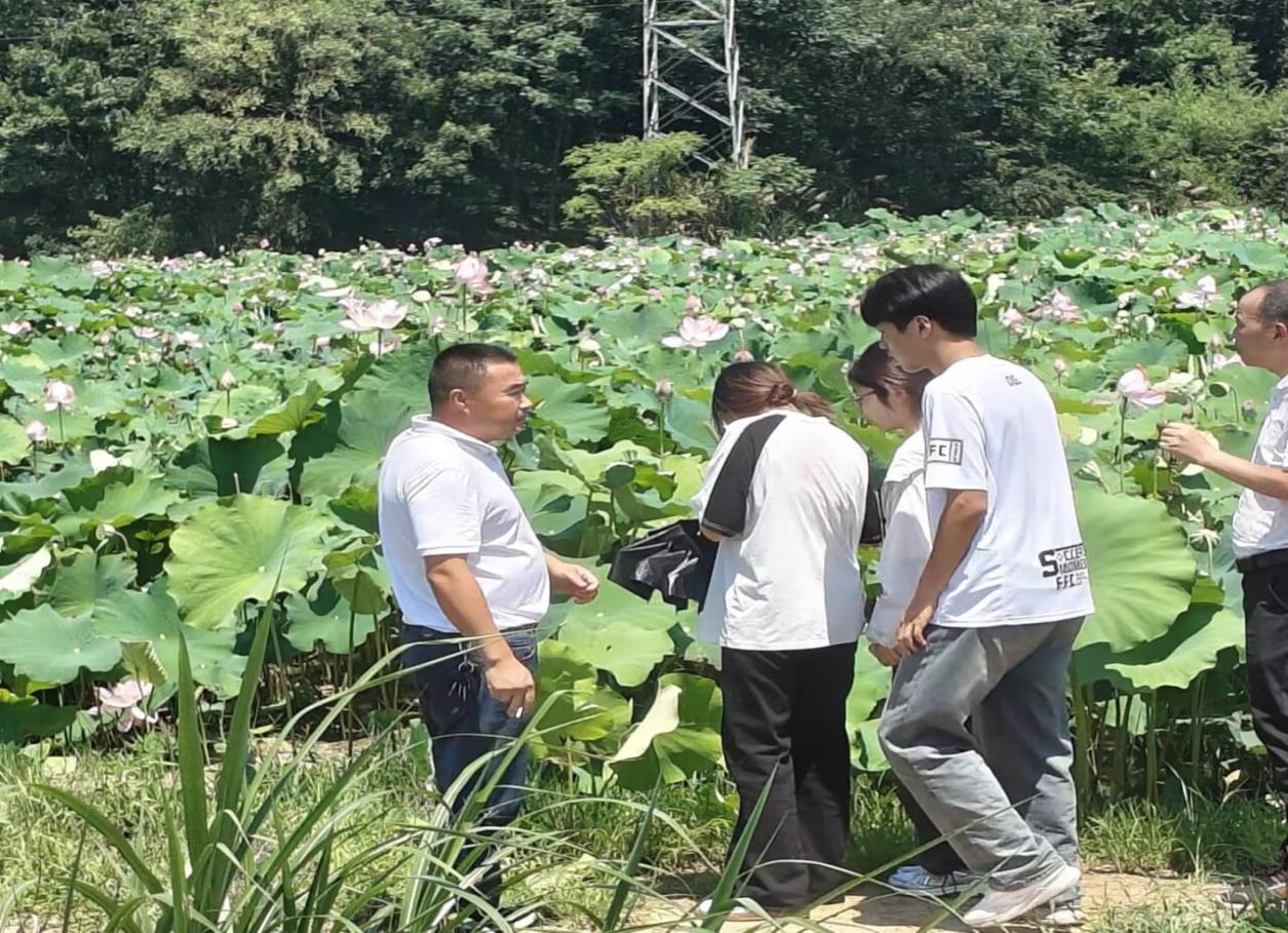 之后實踐團走入了池州市牛頭鎮(zhèn)關(guān)山村的荷花種植基地。當?shù)氐拇迕裣驅(qū)嵺`團介紹了蓮子的生長周期及采摘與保鮮技巧。實踐團成員們通過實地考察了解到荷花種植在生態(tài)旅游、蓮產(chǎn)品開發(fā)等方面的價值。