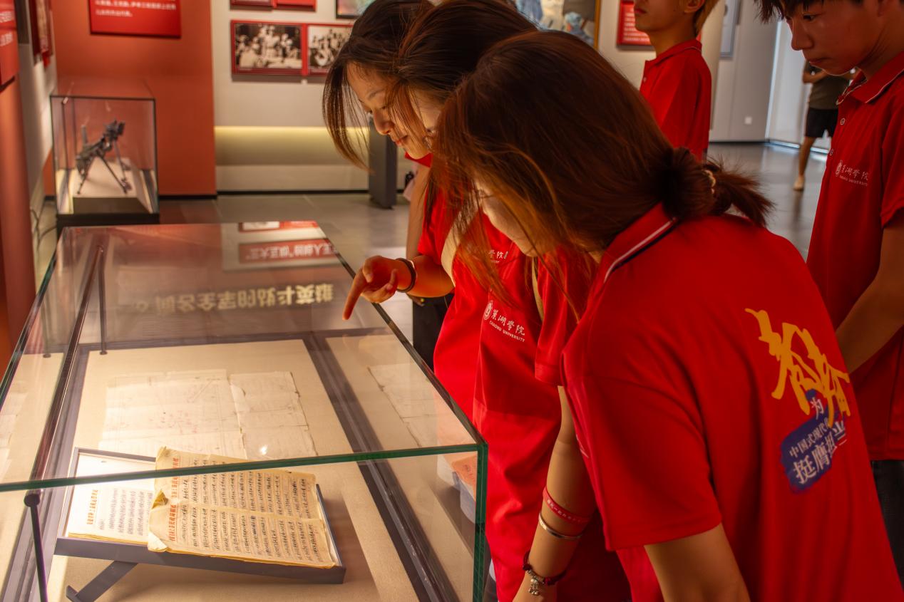 實踐團隊的第一站來到了潁上和平廣場革命烈士紀(jì)念館。團隊成員們沿著"潁上暗夜、追尋真理“到”鑄就新華、穎上新生“五個主題展廳,深入了解到這片紅色熱土的革命歷史,因革命先輩為當(dāng)?shù)亟夥攀聵I(yè)的無畏犧牲而動容。