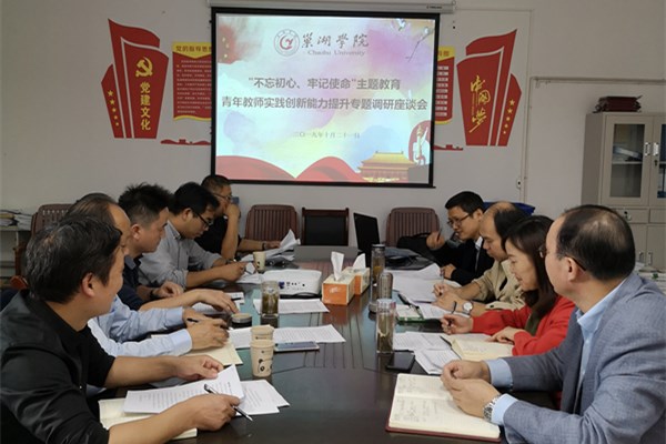 為進一步貫徹落實學校“不忘初心、牢記使命”主題教育相關部署要求。10月21日下午2:30,在教務處會議室組織開展“不忘初心、牢記使命”主題教育關于教師實踐創新能力提升專題調研座談會,由教務處副處長許雪艷主持,教務處處長丁俊苗、教務處副處長胡傳雙和相關單位教學副院長參加座談會。