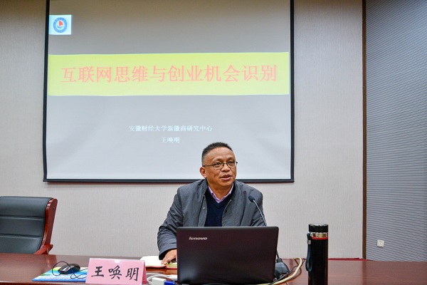本場創業大講堂邀請了安徽財經大學新徽商研究中心主任、蚌埠市安慶商會秘書長王喚明作“互聯網思維與創業機會識別”專題報告。王喚明圍繞互聯網時代的思考、什么是互聯網思維、互聯網時代下創業機會的來源與識別三方面進行了深入的講解,并結合身邊鮮活、典型的創業實戰案例生動闡述了互聯網創業中的用戶思維、簡約思維、極致思維、迭代思維、流量思維、社會化思維、大數據思維、平臺思維和跨界思維。整場報告會既有溫度,又有深度。在互動環節中,與會師生就互聯網創業相關問題與王煥明老師進行進一步交流與探討,紛紛表示受益匪淺。