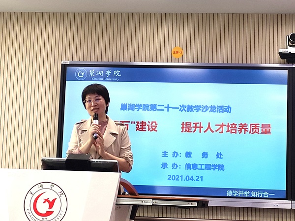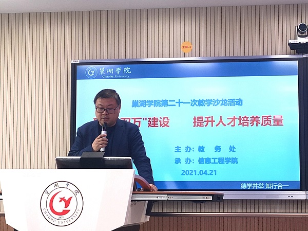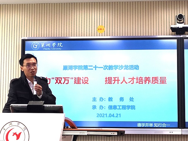 為加快一流專業(yè)和一流課程建設(shè),提升人才培養(yǎng)質(zhì)量,由教務(wù)處主辦、信息工程學(xué)院承辦的“第二十一次教學(xué)沙龍”活動于4月21日下午在博學(xué)樓406智慧教室舉行?;顒又黝}為“聚力‘雙萬’建設(shè) 提升人才培養(yǎng)質(zhì)量”。信息工程學(xué)院院長鄭尚志、副院長吳其林,教務(wù)處副處長胡傳雙、謝如龍,信息工程學(xué)院全體教師及其他學(xué)院感興趣教師參加,鄭尚志主持。