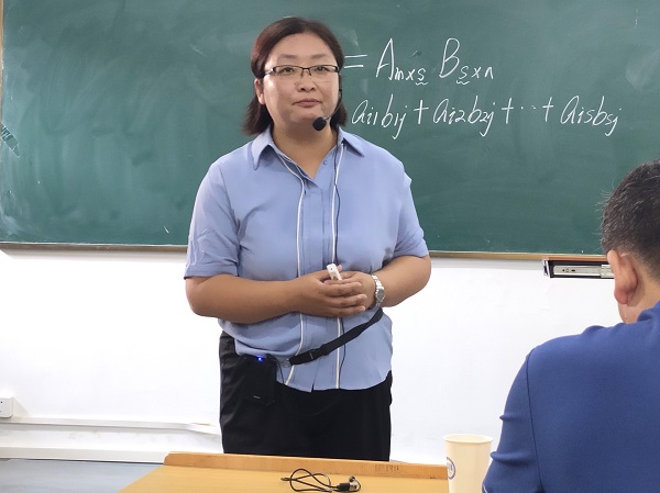 隨后曾老師以《矩陣乘法》為例作了教學示范,并結合多年的教學經驗和參賽心得,從備賽階段、比賽階段、注意事項和體會與收獲四個方面作了經驗交流。她指出備賽要認真閱讀比賽相關文件、提取重要信息、注意材料準備和課堂教學節段PPT設計;比賽階段要注意比賽流程、賽前熟悉現場環境、比賽現場等; 注意事項重點從個人信息、錯別字、屏幕位置、交互式投影、時間控制、教態作了介紹;最后在體會與收獲中分享了雄心壯志、才疏學淺、江郎才盡、破繭成蝶心態歷程。另外在教學設計、板書設計、亮點和特色以及內容前沿性、高階性和創新性,在教學形式趣味性等方面作了細致的分享。數統學院趙開斌院長對曾老師的名師教學示范作了小結,認為曾老師的示范和講解思路清晰、內容豐富、經驗非常值得借鑒和學習。在交流互動環節老師們紛紛圍繞相關問題向曾老師進行了請教和交流。