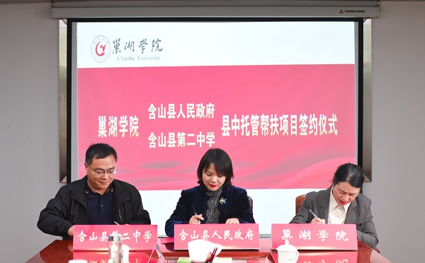 為貫徹落實《安徽省“十四五”縣域普通高中發展提升行動計劃》、《安徽省教育廳關于組織實施高校縣中托管幫扶項目的通知》等工作部署要求,進一步帶動和促進提升我省縣中整體辦學水平。10月31日下午,巢湖學院與含山縣人民政府、含山縣第二中學托管幫扶協議簽約儀式在我校第一會議室隆重舉行。校黨委副書記、院長張莉,校黨委委員、副院長朱定秀,含山縣人民政府副縣長汪媛霞,含山縣教育局黨委書記、局長黃維秀,含山縣第二中學校長龔光軍等領導,辦公室、人事處、教務處、科研處及相關學院負責人出席簽約儀式。儀式由朱定秀主持。
