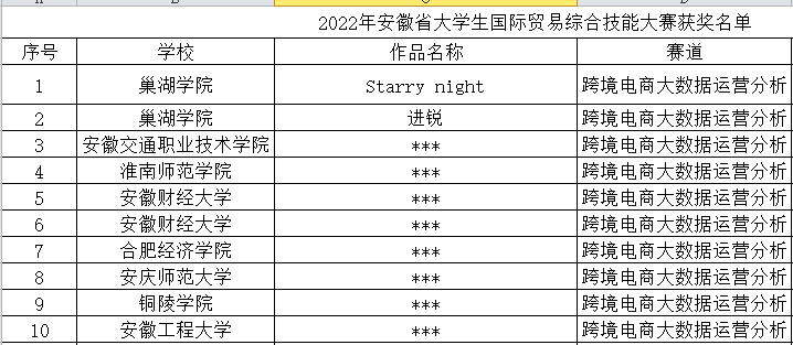 由安徽省教育廳主辦、安徽財經大學承辦,歷時三個月的“2022年安徽省大學生國際貿易綜合技能大賽”成績于11月5日揭曉,巢湖學院在次此大賽中共榮獲8個一等獎、15個二等獎,獲獎隊伍數量再創新高。自2016年舉辦以來,巢湖學院連續第7年榮獲此項賽事一等獎。