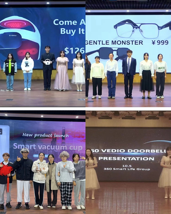 跨境電商網絡直播賽道要求采用純英文進行,從直播產品、編導、主播、運營等直播全流程進行考核。重點考察主播的英語水平、對產品賣點的挖掘、商品特性的展示技巧、直播間前景后景搭建、直播團隊的協助能力等。經濟與法學學院布萊恩特隊搭建了“三只松鼠零食囤貨節”直播間,在直播賽道獲得首個一等獎,外國語學院麥當勞不用排隊搭建了“大牌美妝”直播間,榮獲二等獎。國際貿易新產品發布會賽道要求采用純英文進行。參賽隊伍立足當下科技發展的主流,進行深入調研、慎重選品,突出產品的定位、功能和亮點;展現形式多樣、展示方式新穎、效果獨特。來自經濟與法學學院的14支隊伍、外國語學院的4支隊伍以及旅游管理學院的1支隊伍在本賽道獲得了二等獎以上的好成績。