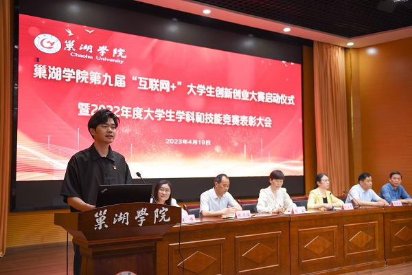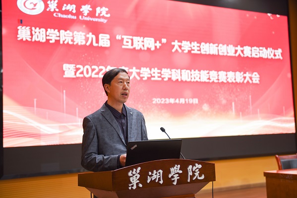 為更充分地做好巢湖學院2023年第九屆中國國際“互聯網+”大學生創新創業大賽的參賽準備和項目培育等工作,4月19日下午,巢湖學院第九屆中國國際“互聯網+”大學生創新創業大賽啟動儀式暨2022年度大學生學科和技能競賽表彰大會在求實樓報告廳隆重舉行。校黨委副書記、校長張莉,黨委委員、副校長朱定秀出席會議,黨委委員、宣傳部部長張連福,學工部部長華紫武,校團委書記王倩,教務處副處長胡傳雙,各學院黨政主要負責人、教學副院長、分團委書記、第八屆“互聯網+”大賽獲省獎項目團隊及指導教師、2022年度受表彰學科技能競賽項目團隊及指導老師、2022級創新創業概論課授課教師和其他感興趣的師生參加會議。會議由朱定秀主持。