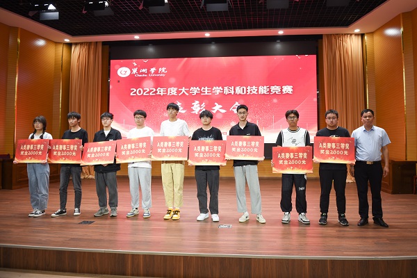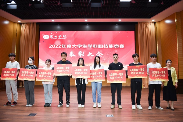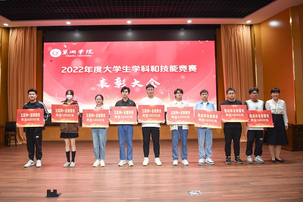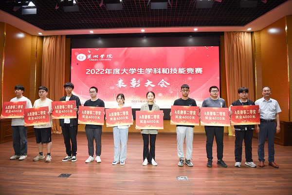 會議表彰了巢湖學院2022年度大學生學科和技能競賽獲獎項目。國賽銅獎獲獎指導教師邢剛老師和省賽銀獎項目負責人盛宇龍同學分別交流了心得體會、分享了參賽經驗。