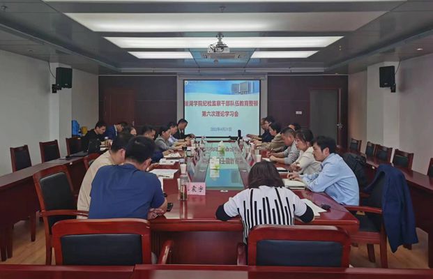 4月21日下午,巢湖學院紀委召開紀檢監察干部隊伍教育整頓第六次理論學習會。學校各二級學院紀委書記,部分學院紀檢委員,紀委辦、巡察辦黨支部全體黨員參加。會議由校紀委辦副主任黃春芳主持。