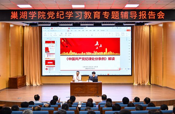 6月13日上午,巢湖學院在求實樓報告廳舉辦黨紀學習教育專題輔導報告會,邀請省紀委監委第八紀檢監察室副主任關慧君作專題輔導報告。校黨委班子全體成員出席報告會。學校科級以上干部、黨支部書記參加會議。會議由校黨委書記周峰主持。