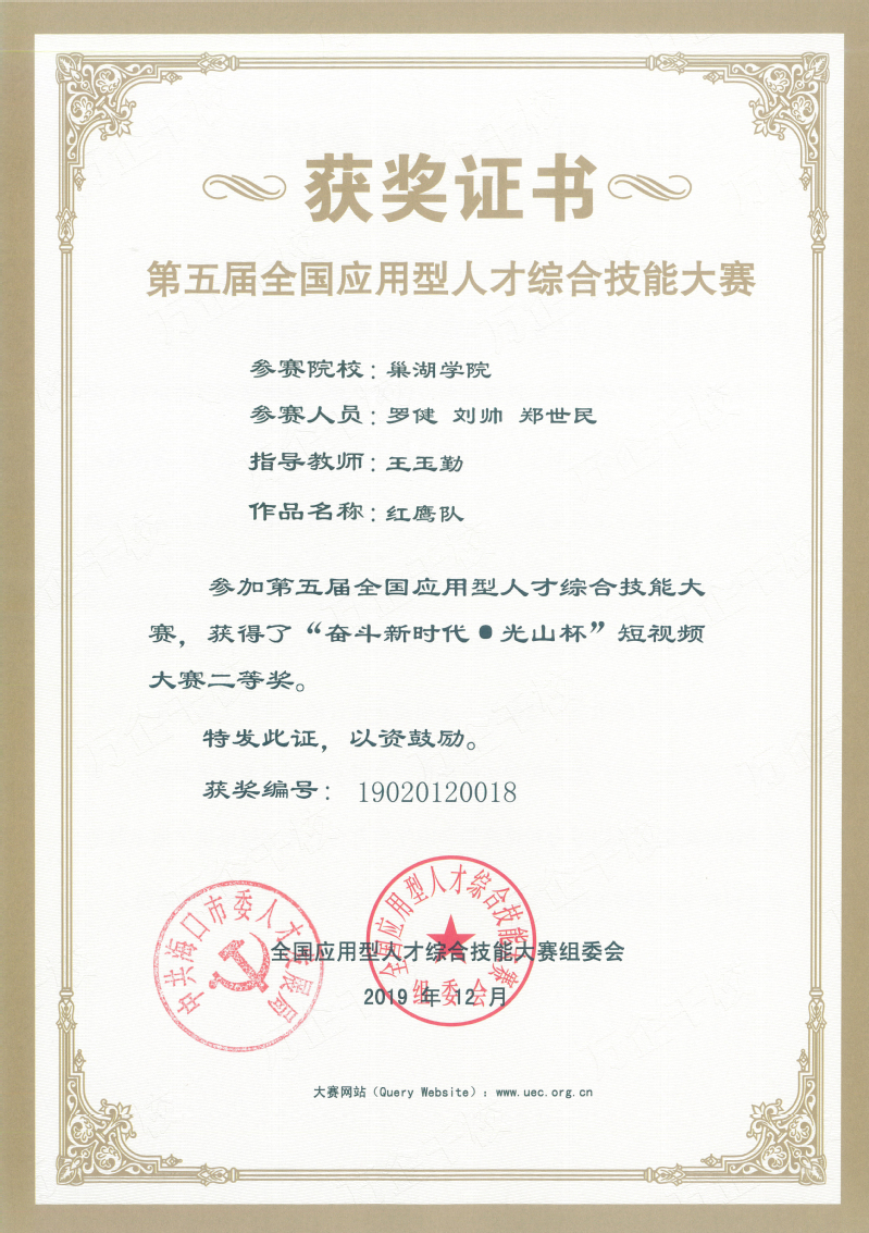 第五屆全國應用型人才綜合技能大賽二等獎——光山杯 2019.12