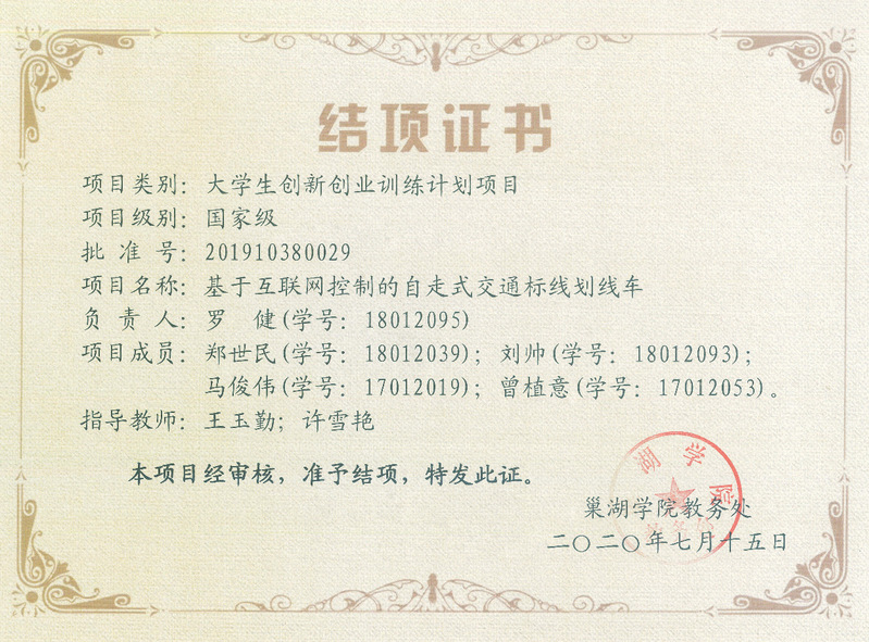 國家級大學生創新創業計劃訓練 ——基于互聯網控制的自走式交通標線劃線車 2020.07.15
