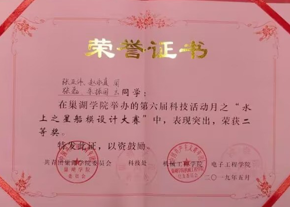 張磊,男,漢族,1998年生,安徽六安人,巢湖學院機械工程學院2018級機械設計制造及其自動化專業3班學生。在校期間積極參加班級集體活動,參加學科競賽獲得校級以上獎項6項。2022年,考上溫州大學碩士研究生。