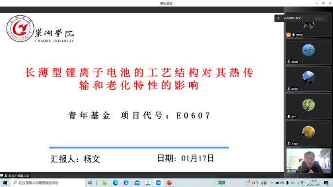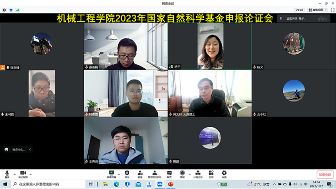 為做好2023年度國家自然科學基金項目申報工作,提高項目申報質量,機械工程學院于1月17日下午組織召開了2023年度國家自然科學基金項目申報線上論證會議。會議邀請了上海交通大學胡成亮教授、大連理工大學黃火林教授、南京航空航天大學占小紅教授和南京郵電大學謝燕楠教授作為論證專家為項目申報把脈問診。校科技處處長姚磊,機械工程學院副院長張自鋒,安徽省高效智能光伏組件工程研究中心主任王可勝教授,項目申請人王青堯博士、葉奇魯博士和楊文博士等參會。會議由機械工程學院院長許雪艷主持。