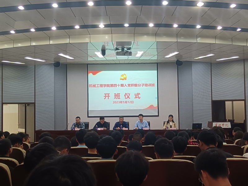 為深入學習貫徹黨的二十大精神,充分發揮黨校培養教育黨員的主陣地作用,2023年5月12日,機械工程學院在致知樓報告廳舉行第40期入黨積極分子培訓班開班儀式暨黨課第一講。學院黨委書記何照澤,黨委副書記、紀委書記李融,副院長張自鋒,學生支部書記蘇潔紅、方錢、王靖國出席開班儀式,儀式由李融主持,第40期黨校培訓班全體學員參會。
