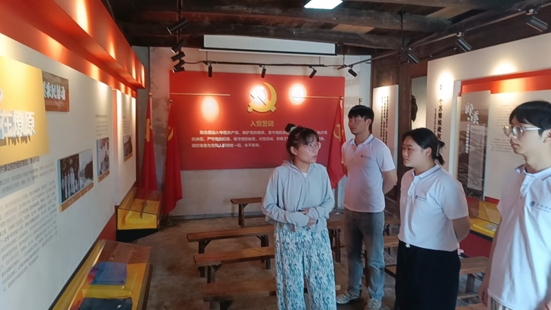 追尋紅色足跡、傳承革命精神。7月2日,實踐團成員赴宣城市郎溪縣濤城鎮沙橋支部舊址和大佛山養心谷紅色革命紀念館開展“追尋紅色足跡、傳承革命精神”活動。中共郎溪縣特別支部,時稱沙橋支部,是郎溪縣最早的黨組織之一。大佛山養心谷紅色革命紀念館位于郎溪縣濤城鎮慶豐村,建有偉人展廳、像章展廳、郎溪歷史展廳、文獻展廳、日本歷史罪行展廳等七大主題。收藏有毛主席像章、日本侵華罪證、郎溪地方抗日歷史及文獻資料等藏品近15000件。團隊成員感受了郎溪老城革命發展的光輝歷程。