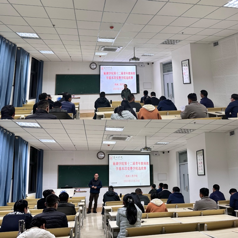 為進一步加強青年教師培養,提升青年教師的教學能力和水平,不斷提高課堂教學質量,11月22日下午,機械工程學院在崇學樓中306、307教室舉辦校第十二屆青年教師教學基本功競賽選拔賽。本次選拔賽分兩組進行,共有22名青年教師參賽,學院教學督導、系主任擔任評委,全體任課教師全程觀摩了比賽。