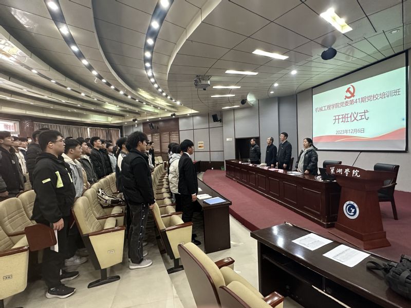 為加強入黨積極分子和發展對象教育,端正其入黨動機,把好黨員發展入口關,2023年12月6日中午,機械工程學院黨委第41期黨校培訓班在致知樓報告廳正式開班。學校黨委委員、宣傳(統戰)部部長、學院黨委書記張連福,學院黨委副書記、紀委書記李融,組織員兼黨校班主任方錢,輔導員兼學生第二黨支部書記王靖國出席開班儀式。學院36名入黨積極分子和34名發展對象參加開班儀式。開班儀式由李融主持。