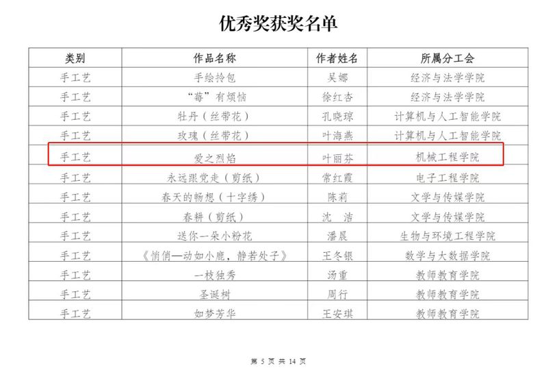 近日,機(jī)械工程學(xué)院在2023年巢湖學(xué)院“書(shū)潤(rùn)匠心”讀書(shū)征文活動(dòng)中獲得優(yōu)秀組織獎(jiǎng),學(xué)院教職工張彬的作品《日子》、方錢(qián)的作品《讀<我本芬芳>有感》獲得三等獎(jiǎng),汪繽繽的作品《孩子的老師——<窗邊的小豆豆>》獲優(yōu)秀獎(jiǎng)。在巢湖學(xué)院舉辦的“芳華印記 魅力女性”書(shū)畫(huà)、攝影、手工藝作品比賽中,學(xué)院教職工方錢(qián)的攝影作品《巢院四季(組圖)》獲一等獎(jiǎng)、葉麗芬的手工藝作品《愛(ài)之烈焰》、蔡玲存的攝影作品《湖之韻》《守望》、汪繽繽的攝影作品《美麗巢湖》、余榮麗的攝影作品《巢院藍(lán)》、方錢(qián)的攝影作品《巢院的天空》獲優(yōu)秀獎(jiǎng)。