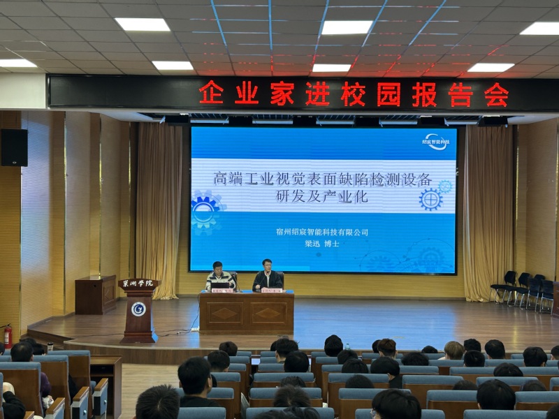 梁迅首先作了題為《高端工業(yè)視覺表面缺陷檢測設(shè)備研發(fā)及產(chǎn)業(yè)化》的主題報告。他從團隊介紹、公司情況和核心技術(shù)等方面進行了詳細介紹,希望同學(xué)們在校期間一定要學(xué)好專業(yè)知識,早做人生規(guī)劃。