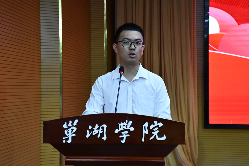 2021屆機電專業倪想同學作為優秀校友代表發言。他深情講述了在母校求學期間的奮斗歷程和成長故事,希望全體畢業生努力拼搏,為巢湖學院爭光。