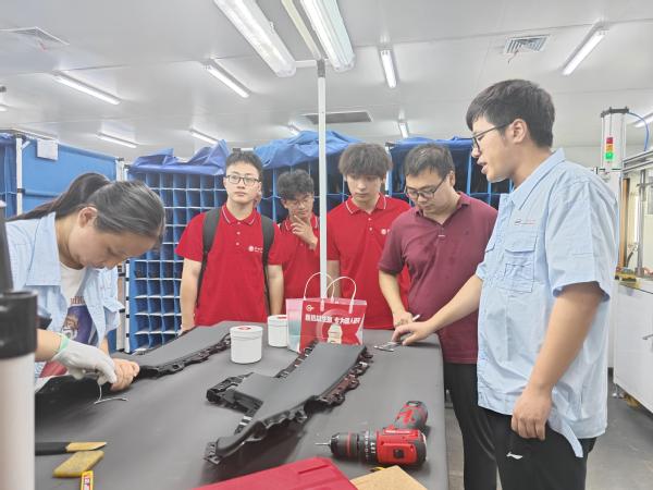 在工作人員的帶領下,團隊成員實地觀摩了華翔汽車車門有限公司生產車間。隊員們對職工進行了現場采訪,受訪人員表示,較之傳統汽車產業和傳統制造業,新能源汽車產業是機械專業學生未來就業新方向,對行業和個人的未來發展抱有足夠的信心。