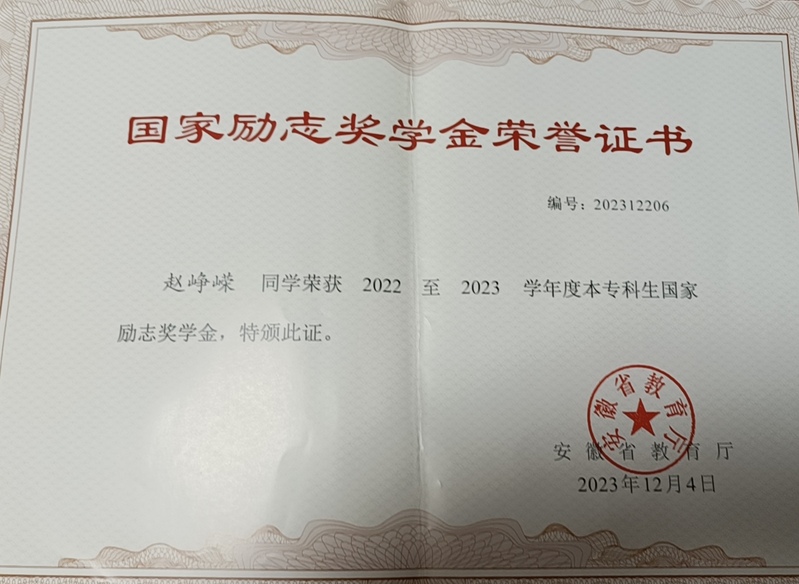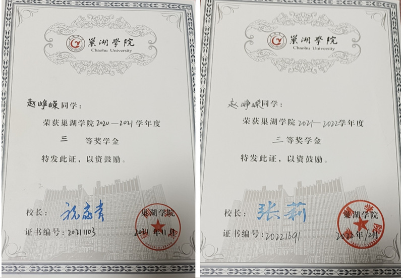 在校期間認真學習,曾獲得校級三等獎學金兩次,國家勵志獎學金等。