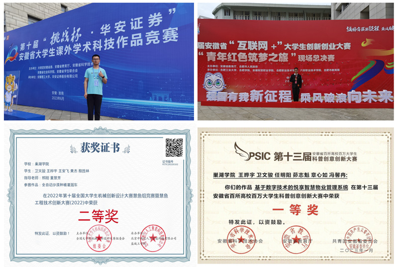 王曄宇同學(xué)在各類學(xué)科競賽中屢創(chuàng)佳績,展現(xiàn)了他的卓越才華和不懈追求。從國家到省部,再到學(xué)校層面,他積極參與并認(rèn)真對待每一項(xiàng)賽事,榮獲了包括第十屆全國大學(xué)生機(jī)械創(chuàng)新設(shè)計(jì)大賽,第八屆中國國際“互聯(lián)網(wǎng)+”大學(xué)生創(chuàng)新創(chuàng)業(yè)大賽,第十屆“挑戰(zhàn)杯·華安證券”安徽省大學(xué)生課外學(xué)術(shù)科技作品競賽,第六屆全國大學(xué)生工業(yè)設(shè)計(jì)大賽,第十三屆安徽省百所高校百萬大學(xué)生科普創(chuàng)意創(chuàng)新大賽等在內(nèi)的眾多獎項(xiàng)。