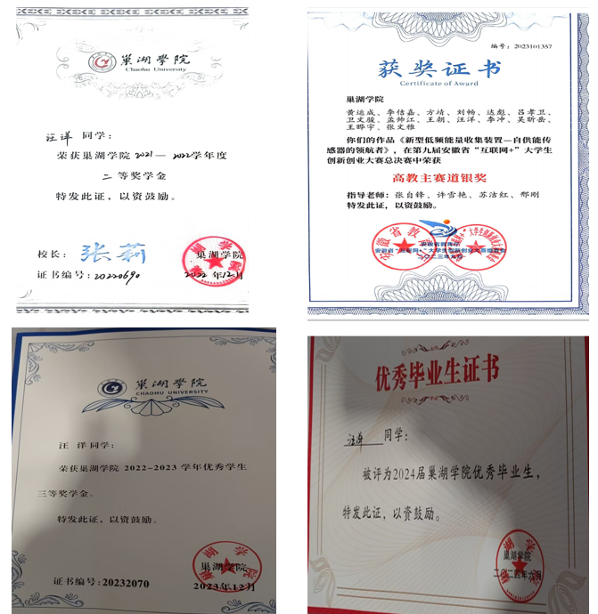 汪洋,男,漢族,2001年3月生,中共黨員,巢湖學(xué)院機(jī)械工程學(xué)院機(jī)械電子工程專業(yè)2024畢業(yè)生。現(xiàn)就讀于南京林業(yè)大學(xué)。