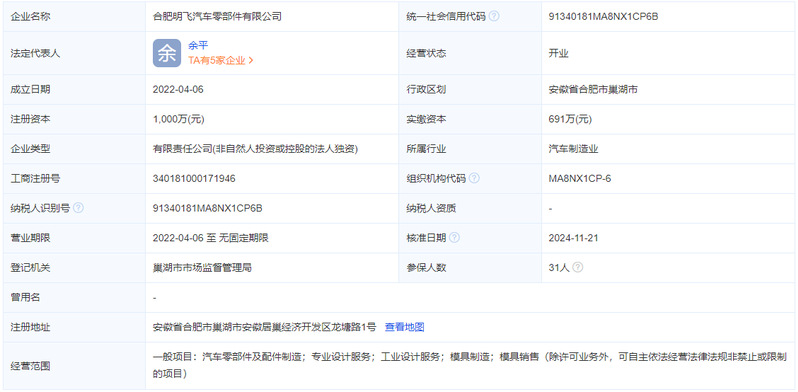 合肥明飛汽車零部件有限公司隸屬于寧波明飛科技股份有限公司,地址在巢湖市安徽居巢經濟開發(fā)區(qū)龍?zhí)谅?號,現在規(guī)模350人左右,招聘2-3人工藝工程師的管培生,工作時間是8小時,長白班,大小休,員工住宿暫時居住在政府的公租房,包中餐,工資5000左右,有意愿的同學請聯(lián)系殷劍松經理15055187576或者掃碼進群咨詢。