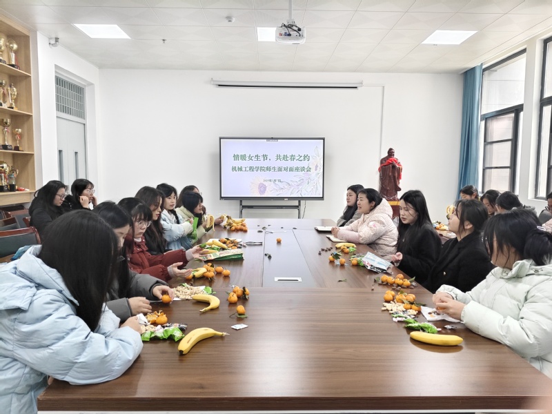 為進(jìn)一步豐富學(xué)院女生的精神文化生活,營造濃厚的節(jié)日氛圍,2025年3月7日中午,機(jī)械工程學(xué)院舉辦主題為“情暖女生節(jié),共赴春之約”的師生座談會(huì)。學(xué)院女輔導(dǎo)員方錢、謝丹丹及全體女生參加。