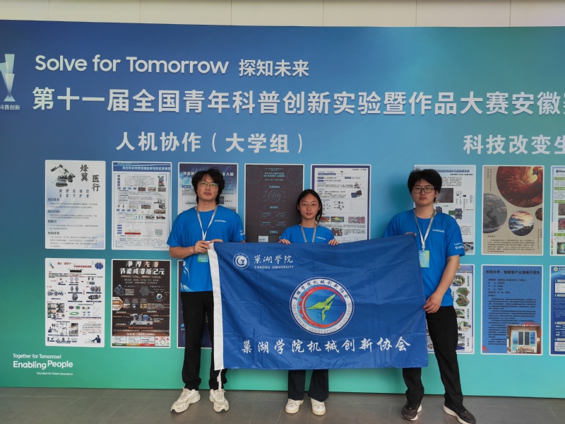 2025年5月18日,第十一屆全國青年科普創新實驗暨作品大賽安徽賽區復賽在安徽省科技館圓滿落幕。經過激烈角逐,機械工程學院學子張登、趙文著、宋湘婷團隊提交的作品《慧眼智行-網球撿入車》(指導教師:王玉勤、蘇潔紅),以全省高校組第六名的成績榮獲三等獎。