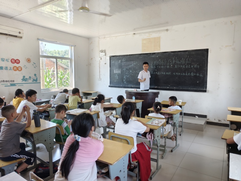 出發前,團隊指導教師蘇潔紅圍繞課程設計、家訪溝通、安全保障等內容,向成員細致叮囑注意事項,明確需聚焦留守兒童學習與心理需求,確保活動精準有效,為實踐筑牢基礎。7月3日,團隊攜教學物資抵達中李村留守兒童中心,受到烔煬鎮黨委領導、村干及中心梁邦定校長的熱烈歡迎。成員迅速整理場地,以飽滿熱情迎接孩子們。