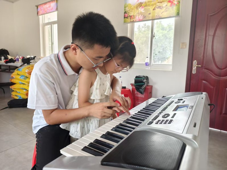 音樂課堂上,志愿者教唱歌曲《感恩的心》,童聲悠揚;數獨課中,以闖關游戲激發思維;繪畫課里,孩子用畫筆描繪鄉村美好,興趣與創造力充分釋放。