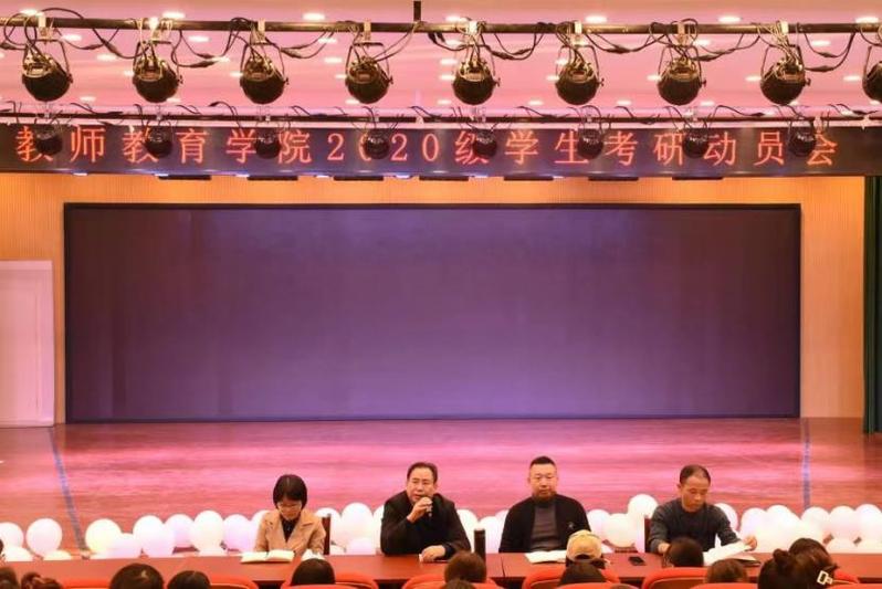 為貫徹培養學生為中心的思想,增強學生的社會市場競爭力。11月9日16:00教師教育學院在藝術樓報告廳舉辦2020級學生考研動員會,會議由副院長蔡廣主持,黨委書記朱玉票、副書記左勁中、副院長鄭艷、教師代表以及輔導員參會,全場座無虛席。