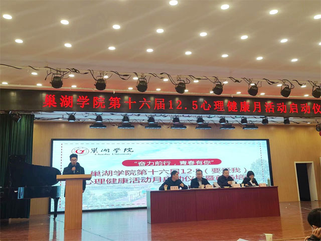 2022年11月30日下午,巢湖學院第十六屆“12?5”心理健康活動月啟動儀式在藝術樓報告廳隆重舉行。巢湖學院副校長周祥、學工部部長華紫武、教師教育學院副院長蔡廣(主持)、心理健康教育中心專兼職心理教師、二級學院心理輔導站站長、心理部長、2022級班級心理委員出席了此次啟動儀式。本次啟動儀式由教師教育學院副院長鄭艷主持。