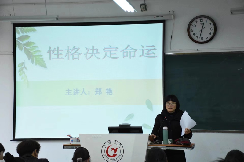 鄭艷采取理論聯(lián)系實(shí)踐的方式,與參加培訓(xùn)的學(xué)生干部就“性格決定命運(yùn),性格影響身心健康”進(jìn)行了深入交流。她指出優(yōu)秀的“學(xué)生干部”群體,對(duì)一個(gè)學(xué)院學(xué)生管理具有承上啟下的關(guān)鍵作用,是學(xué)院培養(yǎng)學(xué)生能力的主力軍,其工作繁雜、責(zé)任重大,工作也會(huì)產(chǎn)生壓力,作為一名學(xué)生干部需要學(xué)會(huì)心理調(diào)節(jié),掌握心理健康知識(shí)。