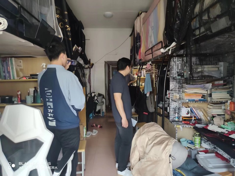 輔導員每周深入學生宿舍組織班級衛生安全自查,學院定期和不定期開展檢查。4月19日下午,學院黨委副書記左勁中、團委掛職副書記袁蕙、輔導員陳高言分別帶隊,對學生宿舍衛生安全、學習生活情況進行檢查,建立臺賬。對存在的問題進行現場整改,并追蹤檢查。