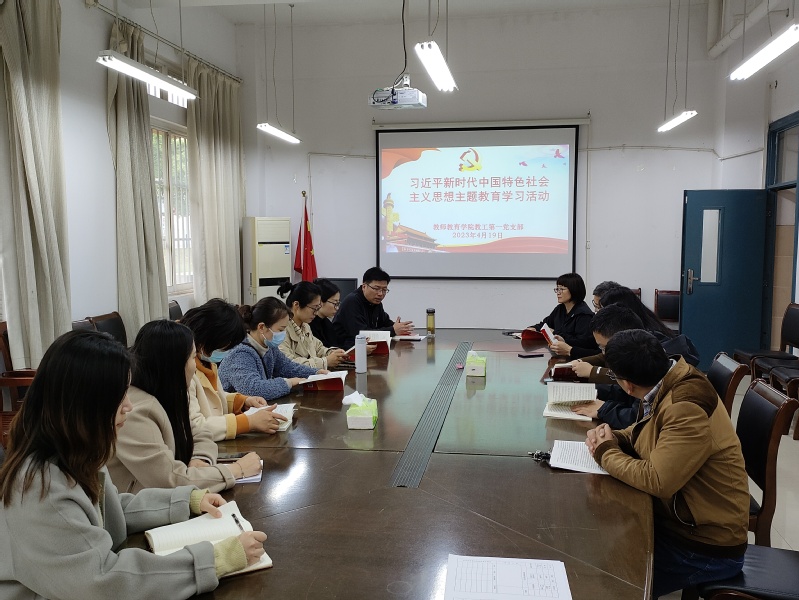 為全面貫徹落實(shí)黨的二十大精神,深入學(xué)習(xí)貫徹習(xí)近平新時(shí)代中國(guó)特色社會(huì)主義思想,2023年4月19日中午13時(shí),教師教育學(xué)院教工第一黨支部召開(kāi)了學(xué)習(xí)貫徹習(xí)近平新時(shí)代中國(guó)特色社會(huì)主義思想主題教育理論學(xué)習(xí)黨員大會(huì)。支部書記鄭艷主持會(huì)議,支部全體黨員參加。