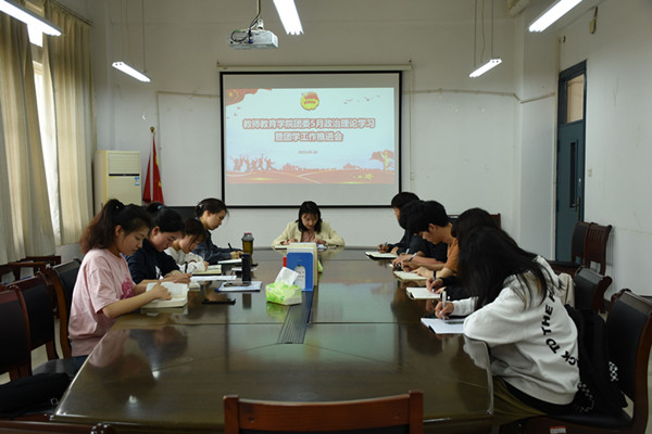 為提升學生干部的政治理論水平,充分發揮基層團組織的積極性和主動性,進一步加強學院團學組織建設,推進團學各項工作順利開展。5月10日中午12:00,教師教育學院團委在黨員活動室召開5月份政治理論學習暨團學工作推進會,學生兼職團委副書記、各學生組織主要負責人參加會議,本次會議由學院團委副書記湯重主持。