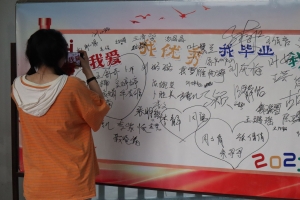 晚會開始前,畢業生們身著盛裝緩緩走過紅地毯,在簽名墻上簽名合影留念,在閃光燈下留下了最美好的青春回憶。