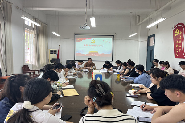 為推動學習貫徹習近平新時代中國特色社會主義思想主題教育走深走實,6月7日中午1點,教師教育學院學生第二黨支部在黨員活動室開展主題教育理論學習,全體黨員參加。學院黨委書記朱玉票、黨委副書記左勁中到會指導,本次會議由支部書記湯重主持。