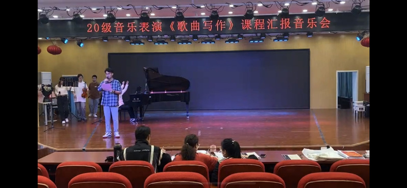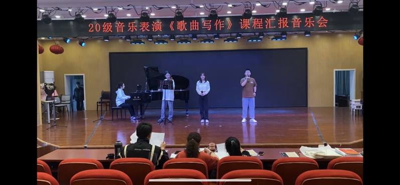 6月5日晚,由楊丹老師教授的20級音樂表演專業(yè)學生《歌曲寫作》課程教學結(jié)課音樂會,在教師教育學院二樓音樂廳隆重舉行。邀請周雨茜和周澤漢兩位嘉賓老師進行現(xiàn)場評課。