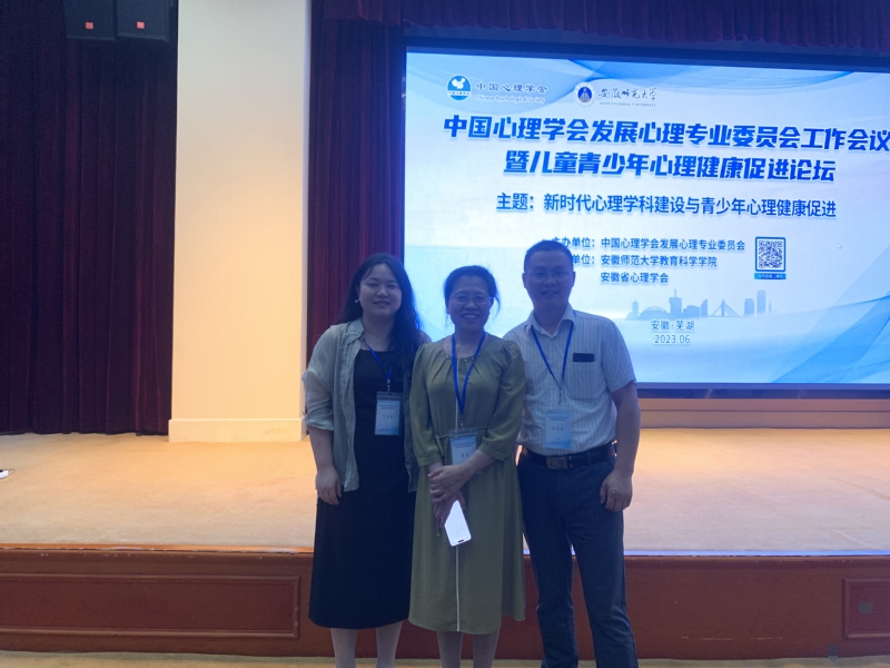 中國心理學會發展心理專業委員會工作會議暨兒童青少年心理健康促進論壇于2023年6月9日至6月11日在安徽蕪湖召開。本次會議由中國心理學會發展心理專業委員會主辦,安徽師范大學教育科學學院、安徽省心理學會承辦,來自全國200余名專家、學者出席了本次會議。教師教育學院應用心理學專業教師信中貴、袁蕙參加會議。