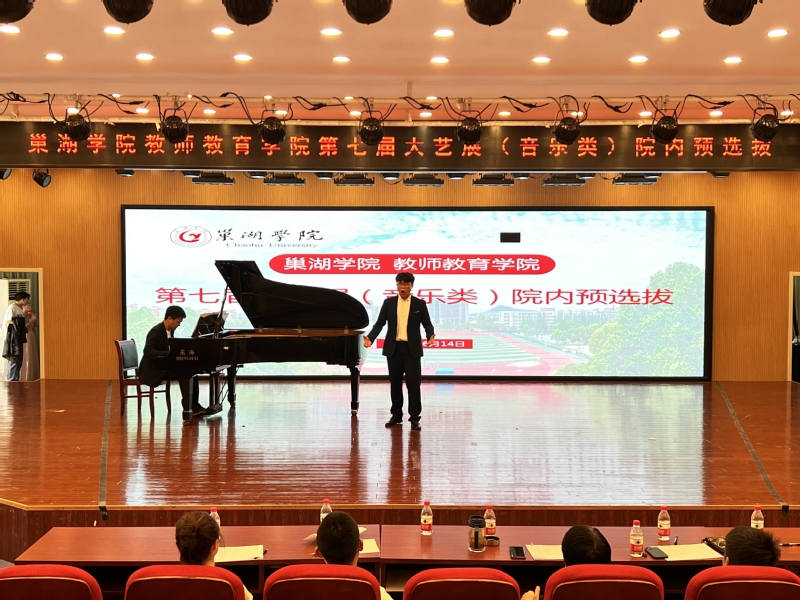 為做好巢湖學(xué)院第七屆大學(xué)生藝術(shù)展演活動(dòng)組織工作,6月14日下午教師教育學(xué)院舉辦大藝展節(jié)目選拔活動(dòng)。本次活動(dòng)有幸邀請(qǐng)到男高音歌唱家、國(guó)家一級(jí)演員、安徽藝術(shù)學(xué)院發(fā)展規(guī)劃與科研處處長(zhǎng)孫來(lái)法,安徽藝術(shù)學(xué)院音樂(lè)舞蹈系黨總支副書(shū)記李傳興教授,安徽藝術(shù)學(xué)院合唱指揮教師夏傲蒞臨指導(dǎo)。