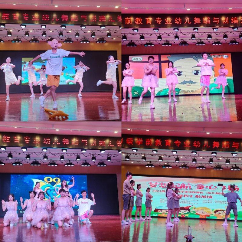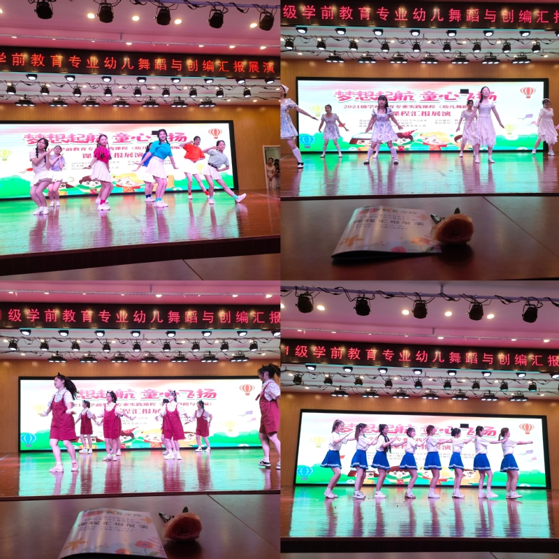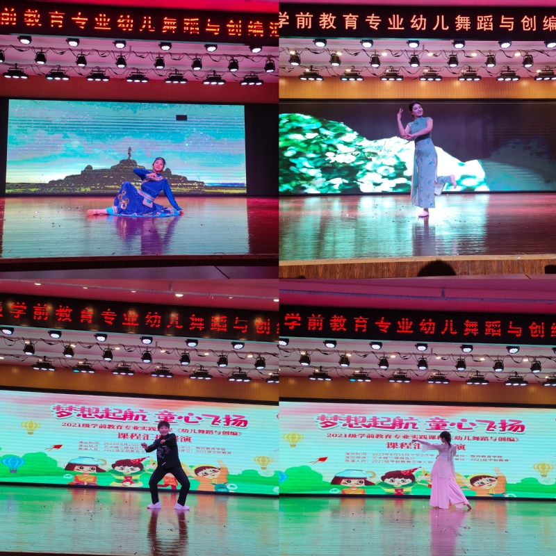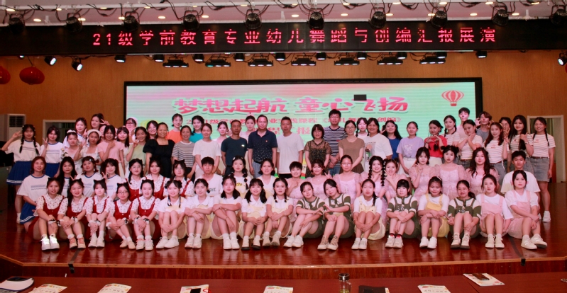 2023年6月15日下午16時30分,教師教育學院在藝術樓多功能音樂報告廳舉辦2021級學前教育專業《幼兒舞蹈與創編》課程匯報演出。此次專業匯演由專業教師劉楊擔任導演與監制,2021級學前教育專業全體同學共同參演,教師教育學院黨委書記朱玉票、副院長蔡廣、副院長鄭艷,學前教育專業教師與輔導員出席并觀看匯報演出。