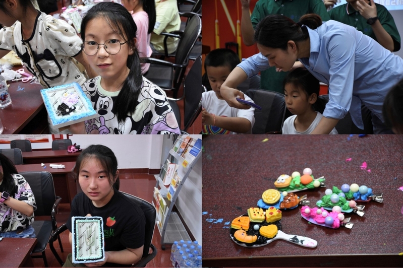 實踐團成員何鳳帶領小朋友們開展了手工療愈系列活動之一——奶油膠。藝術療愈作為一種心理治療手段,通過對藝術的表達更直觀地感受自己的內心。活動中,孩子們根據自己的喜好選擇制作鏡子、筆筒、相框等手工品。大家都積極活躍參加創作,耐心地擠著奶油膠,用色彩清新的奶油膠輕輕打底,發揮想象,綴上各種可愛的裝飾小配件。大家在一起積極交流創意,互相展示自己的作品,實踐團成員們也積極加入孩子們的創作中,活動現場氣氛十分熱烈。