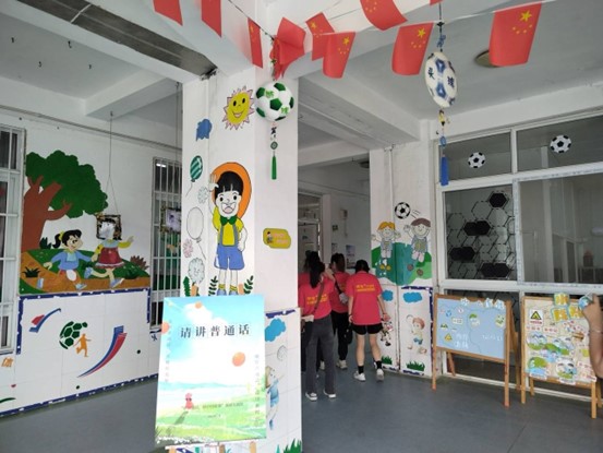 6月30日上午,實踐團來到肥西縣紫蓬山管委會中心幼兒園,通過問卷調查、與教師面對面訪談的形式了解當地幼兒園的普通話推廣情況以及在推普過程中遇到的困難和問題。在訪談中,實踐團了解到由于地域風俗因素,孩子們普遍存在某些字詞發音不準的現象;大多的孩子由爺爺奶奶帶大,受老一輩影響,部分孩子方言使用頻次較高;由父母帶大的孩子普通話則較為標準且使用頻次較高。通過進一步訪談,實踐團了解到紫蓬山管委會中心幼兒園非常重視孩子的普通話教育,園內隨處可見諸如“說普通話,做文明人”標語,各種形式的語言活動常見于教育教學,說普通話貫穿整個教學和生活場景,潛移默化的引導孩子們會說普通話、多說普通話。